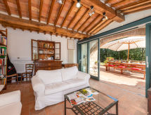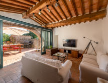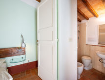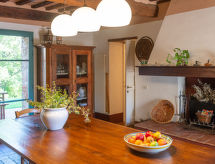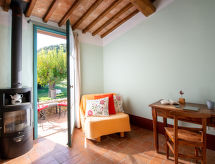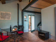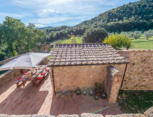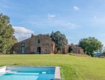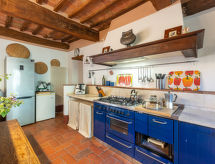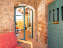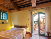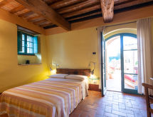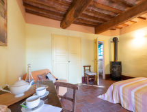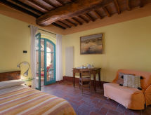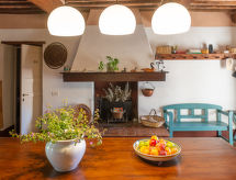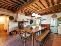 Ugodan, rustikalan Agroturizam "Podere Vignali", na 2 kata, zasebna iz 12. stoljeća, godina izgradnje 1300, okružen livadama i poljima. 2 apartmana u kući. 2 km od centra mjesta Pari, izolirano, mirno, sunčano mjesto, 60 km od mora. Za zajedničko korištenje: veliki vrt -, livada Za samostalno korištenje: bazen (10 x 4 m, 100- 150 cm dubok, sezonska dostupnost: 01.Jun. - 30.Sep. bazen je otvoren u vremenu: 08:00-20:00) s unutarnjim stepenicama. Vrtna garnitura za sjedenje, roštilj. Bazen održava vlasnik/vrtlar. U kući: perilica za rublje (uz doplatu). Kuhar moguć (uz doplatu). 1.5 km dugački strmi, uski prilaz autom (bijela cesta). Parking na parceli. Trgovina živežnim namirnicama 2 km, supermarket 20 km, restoran 2 km, bar 2 km, pekara 2 km, pješčana plaža "Marina di Grosseto" 60 km, termalno kupalište "Petriolo" 5.6 km. Pješačke staze od kuće 50 m. U blizini: Siena 39 km, Grosseto 46 km, Montalcino 48 km. Pješačke staze: Riserva Natuarle Farma 11 km. Dodatna informacija: preporučljiv vlastiti prijevoz. Oprema za bebe na upit (uklj.). Prodaja domaćih poljoprivrednih proizvoda. Vlasnik živi u istoj kući. Vlasnik ima psa.Interior