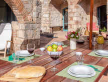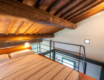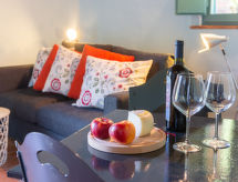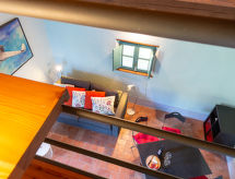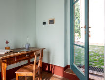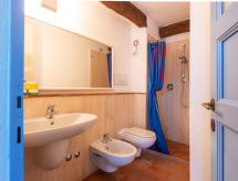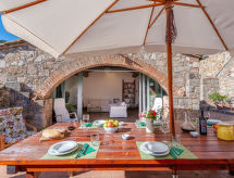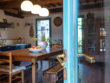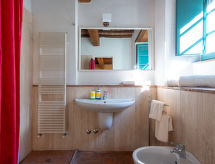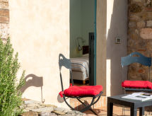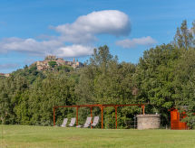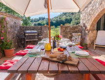 6 -sobni apartman 150 m2, u prizemlju. Prostrano, rustikalno i ukusno uređen: dnevni boravak s TV-om. Izlaz na lođu. 1 soba s 1 kaučem za 1 osobu, 1 bračnim krevetom, tušem/bidetom/WC-om i peći na drva. Izlaz na terasu, na lođu. 1 bračna soba, bez prozora s tušem/bidetom/WC-om i peći na drva. Izlaz u vrt. 1 soba s 1 kaučem za 1 osobu, 1 bračnim krevetom, tušem/bidetom/WC-om i peći na drva. Izlaz na lođu. 1 otvorena velika soba s kosim stropom, na 2 nivoa s 1 kaučem za 2 osobe, 1 bračnim krevetom, tušem/bidetom/WC-om i peći na drva. Izlaz u vrt, na mjesto za sjedenje u vrtu. Velika kuhinja (pećnica, perilica za suđe, 6 plamena za kuhanje, kuhalo za vodu, zamrzivač, el. aparat za kavu) s otvorenim kaminom, stolom za blagovanje i odv. WC-om. Izlaz na lođu. Prirodni kameni pod. Komforno uređeno u ladanjskom stilu. Velika terasa. Garnitura za sjedenje, vrtni roštilj. Vrlo lijep panoramski pogled na krajolik i Pari. Na raspolaganju: perilica za rublje (uz doplatu). Mrežice protiv komaraca, visoka dječja stolica, dječji krevetić do 2 godine, sušilo za kosu, drvo (uz doplatu). Internet (wireless LAN [WLAN], besplatan). Dodatna informacija: apartman za nepušače. Zasebne stambene jedinice nisu interno povezane.- postrojenja