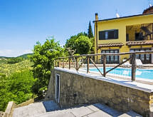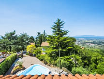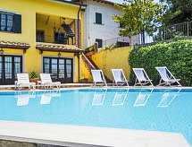 Porciano 8 km od mjesta Vinci: Residence "Poggio alla Baghera", 300 m n.m.. 4 apartmana u kući. 8 km od centra mjesta Vinci, 54 km od centra mjesta Pistoia, 64 km od centra mjesta Pisa, mirno, sunčano, povišeno mjesto na brežuljku, u slijepoj ulici. Za zajedničko korištenje: parcela (ograđena), bazen (iznad zemlje) (140 cm dubok, sezonska dostupnost: 08.May. - 25.Sep. i 07.May. - 24.Sep.). Vrtna garnitura za sjedenje, roštilj. Grijanje se plaća u destinaciji, grijanje na raspolaganju samo od 01.11. do 07.04.. 800 m dugački uski prilaz autom do kuće. Trgovina 9 km, trgovina živežnim namirnicama 1 km, pješčana plaža "Viareggio - Forte dei Marmi" 86 km, termalno kupalište "Montecatini Terme" 25 km. Golf teren (18 rupa) 20 km. U blizini: Carmignano e San Miniato 25 km, Montecarlo e Pescia 32 km, Lucca 50 km. Dodatna informacija: Fotografija prikazuje samo tipičan primjer kuće. Mogućnost rezerviranja dodatnih smještajnih jedinica.