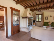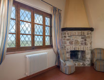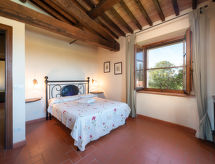 "Poggio Campana", 7 -sobna kuća 370 m2 na 2 etaže. Prostrano, komforno i ukusno uređena: dnevni boravak 40 m2 s otvorenim kaminom i TV-om. Izlaz u vrt, na bazen. 1 bračna soba s tušem/bidetom/WC-om. 1 soba s 1 krevetom, 1 bračnim krevetom i tušem/bidetom/WC-om. Kuhinja (4 ploče za kuhanje, pećnica, perilica za suđe, toster, zamrzivač, el. aparat za kavu) s otvorenim kaminom i stolom za blagovanje. Izlaz na terasu. Odv. WC. Gornji kat: 1 bračna soba s tušem/bidetom/WC-om. 1 soba s 2 kreveta. 1 bračna soba. Tuš/bidet/WC. Grijanje na plin. Prirodni kameni pod. Komforno uređeno u ladanjskom stilu. 3 terase (natkrite). Garnitura za sjedenje, vrtni roštilj. Vrlo lijep panoramski pogled na krajolik. Na raspolaganju: perilica za rublje, glačalo, mrežice protiv komaraca, visoka dječja stolica do 2 godine, sušilo za kosu. Internet (wireless LAN [WLAN], besplatan). Dodatna informacija: 2 kućna ljubimca / psa dozvoljena. Vlastiti ulaz. Zasebne stambene jedinice nisu interno povezane.- postrojenja