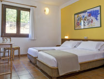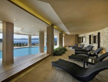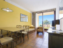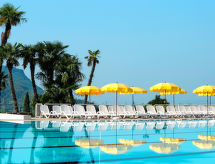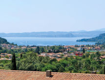 2 -sobni apartman 40 do 45 m2. Svrsishodno uređen: dnevno-spavaća soba s 1 kaučem za 1 osobu, 1 krevetom na izvlačenje, stolom za blagovanje, TV-om sa sat. prijemnikom i klima uređajem. Izlaz na balkon, na terasu. 1 soba s 2 kreveta i klima uređajem. Otvorena kuhinja (4 ploče za kuhanje, mikrovalna pećnica). Tuš/bidet/WC. Grijanje. Balkon ili terasa (djelomično natkrita). Garnitura za sjedenje. Pogled u daljini na jezero. Na raspolaganju: sef (uz doplatu). Internet (wireless LAN [WLAN], besplatan). Parking uz kuću. Dodatna informacija: hladnjak bez zamrzivača apartman za nepušače. Vlastiti ulaz. Na licu mjesta nema naplate dodatnih troškova, osim boravišne pristojbe. Posteljina, ručnici, završno čišćenje i troškovi energije su uključeni u cijenu.- postrojenja
