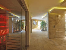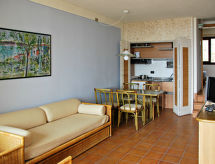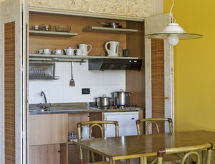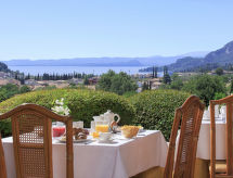 Vrlo veliki turistički kompleks "Poiano Resort Appartamenti", na 2 kata. 160 apartmana u residenceu. Iznad mjesta Garda, na rubu mjesta, 3 km od centra mjesta Garda, povišeno mjesto na brežuljku, 3 km od jezera. Za zajedničko korištenje: parcela 60 ha, terasasti vrt - travnjak i drveće, bazen (50 x 25 m, 140 cm dubok, sezonska dostupnost: 15.Mar. - 15.Nov.). WC uz bazen, bazen za djecu, vanjski tuš, tenis (4 x zemljana podloga), osvijetljen (uz doplatu), stolni tenis, boćalište, igralište za odbojku, odbojka na pijesku, dječje igralište. U kompleksu: recepcija, restoran, bar, sala za doručak, wireless LAN [WLAN], prostorija za fitnes, wellness za zajedničko korištenje (uz doplatu), igraonica za djecu, stolni nogomet, trgovina, centralno grijanje, klimatizacija, perilica za rublje (uz doplatu), sušilica (uz doplatu), najam bicikli. Promjena posteljine - 1 puta tjedno (dodatno uz doplatu). Promjena ručnika - 1 puta tjedno (dodatno uz doplatu). Čišćenje apartmana moguće (uz doplatu). Doručak i polupansion može na upit (uz doplatu). Transfer s aerodroma (uz doplatu). Parking na parceli. Autobusna postaja "Free Shuttle Bus Poiano - Garda" 100 m, šljunčana plaža 3 km. Golf teren (18 rupa) 4 km. U blizini: Peschiera del Garda 17 km, Verona 38 km. Dodatna informacija: animacija u sezoni. Prikladno za obitelji, prikladno za starije osobe oprema za bebe na upit (uz doplatu), babysitting u sezoni.Interior