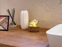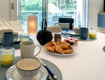 Residence "Port An Dro", na 4 kata, okružen drvećem. U samom mjestu, 100 m od centra mjesta, odlična pozicija: u samom centru, a ipak mirno, 100 m od mora, 100 m od plaže. Za zajedničko korištenje: park (ograđen). U kući: spremište za bicikle. Parking. Trgovina 100 m, trgovina živežnim namirnicama 200 m, supermarket 1 km, restoran 100 m, pješice 5 minuta do centra, pješčana plaža "Grande Plage de Carnac" 100 m, termalno kupalište "Thalassothérapie Thalazur" 100 m. Golf teren (18 rupa) 15 km, škola jedrenja 300 m, jahanje konja 4 km. U blizini: La Trinité sur Mer 6 km, La Presqu'Ile de Quiberon 14 km, Alignements de Carnac 3 km, Auray 18 km, Vannes 33 km, Lorient 52 km. Pješačke staze: le Golfe du Morbihan.Interior