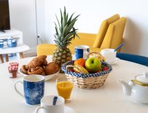 Residence "Port An Dro", na 4 kata, okružen drvećem. U samom mjestu, 100 m od centra mjesta, odlična pozicija: u samom centru, a ipak mirno, 100 m od mora, 100 m od plaže. Za zajedničko korištenje: park (ograđen). U kući: spremište za bicikle. Parking. Trgovina 100 m, trgovina živežnim namirnicama 200 m, supermarket 1 km, restoran 100 m, pješice 5 minuta do centra, pješčana plaža "Grande Plage de Carnac" 100 m, termalno kupalište "Thalassothérapie Thalazur" 100 m. Golf teren (18 rupa) 15 km, škola jedrenja 300 m, jahanje konja 4 km. U blizini: La Trinité sur Mer 6 km, La Presqu'Ile de Quiberon 14 km, Alignements de Carnac 3 km, Auray 18 km, Vannes 33 km, Lorient 52 km. Pješačke staze: le Golfe du Morbihan.Interior
