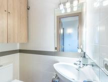 Salins 3ª linea: Lijepi, komforni stambeni objekt "Port Salins". U centru mjesta Empuriabrava, sunčano mjesto, odlična pozicija: u samom centru, a ipak mirno, zona s malo prometa, 150 m od mora, prema jugu. Trgovina, trgovina živežnim namirnicama, supermarket, trgovački centar 200 m, restoran, bar, cafe 20 m, internet cafe 500 m, pješčana plaža "Empuriabrava" 150 m. Sportska lučica 500 m, golf teren (18 rupa) 8 km, škola jedrenja na dasci, škola jedrenja 800 m, tenis 4 km, minigolf 700 m, jahanje konja 2 km, pješačke staze od kuće, biciklistička staza 50 m. U blizini: Centro Aeródromo y túnel del viento 3 km, Parque Acuático Roses 7 km, Casino y festival de Perelada 12 km, Museo Dalí de Figueres 15 km, Ruïnes de Sant Martí de Empuries 21 km, Cadaqués 23 km.Interior