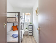3 -sobni apartman 55 m2, u prizemlju, prema jugu. Komforno i udobno uređen: dnevni boravak/blagovaona s 1 kaučem za 2 osobe, stolom za blagovanje, TV-om sa sat. prijemnikom, klima uređajem i grijanjem na topli zrak. Izlaz na balkon, prema jugu. 1 dječja soba s 1 x 2 kreveta na kat (90 cm, dužina 190 cm). 1 soba s 1 franc. krevetom (200 cm, dužina 200 cm), klima uređajem i grijanjem na topli zrak. (mini pećnica, pećnica, perilica za suđe, 3 staklokeramičke ploče za kuhanje, mikrovalna pećnica, zamrzivač, el. aparat za kavu, set za fondue (sir)). Kada/WC. Balkon. Balkonski namještaj. Lijep pogled na kanal. Na raspolaganju: perilica za rublje, glačalo, visoka dječja stolica, dječji krevetić, sušilo za kosu. Internet (wireless LAN [WLAN], besplatan). Dodatna informacija: apartman za nepušače. 1 mali kućni ljubimac / pas dozvoljen. TV samo FR. HUTG034492- postrojenja