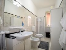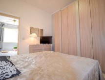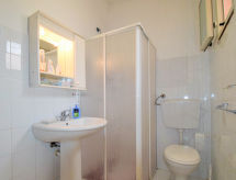 4 -sobni apartman 135 m2, prema jugoistoku. Renoviran godine 2022, komforno i ukusno uređen: veliki dnevni boravak s švedskom peći (samo za dekoraciju), TV-om (plosnatim TV ekranom), klima uređajem i grijanjem na topli zrak. Izlaz na terasu. 2 bračne sobe, svaka soba s TV-om sa sat. prijemnikom (plosnatim TV ekranom), klima uređajem, ventilatorom i grijanjem na topli zrak. 1 bračna soba s klima uređajem i grijanjem na topli zrak. Kuhinja/dn. boravak (4 ploče za kuhanje, pećnica, toster, kuhalo za vodu, mikrovalna pećnica, zamrzivač, el. aparat za kavu) s klima uređajem i grijanjem na topli zrak. Izlaz na terasu. 2 x tuš/bidet/WC. Klima uređaj, grijanje toplim zrakom (uz doplatu). Grijanje na raspolaganju samo od 01.12. do 31.03. Terasa 80 m2 (djelomično natkrita). Garnitura za sjedenje, vrtni roštilj. Vrlo lijep pogled na more. Na raspolaganju: perilica za rublje, glačalo, mrežice protiv komaraca, visoka dječja stolica, dječji krevetić do 2 godine (uz doplatu), sušilo za kosu. Internet (wireless LAN [WLAN], besplatan). Dodatna informacija: najviše 1 kućni ljubimac / pas dozvoljen. Vlastiti ulaz.- postrojenja