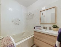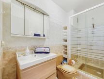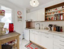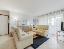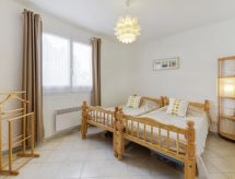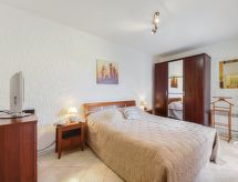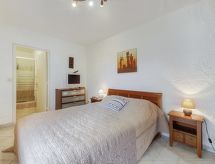 3 -sobni apartman 63 m2 na 1. katu, prema istoku. Lijepo uređen: dnevni boravak/blagovaona s TV-om (plosnatim TV ekranom), klima uređajem i električnim roletnama. Izlaz na terasu. 1 soba s 1 franc. krevetom (140 cm, dužina 190 cm), tušem/WC-om i TV-om (plosnatim TV ekranom), el. peći i ventilatorom. Izlaz na terasu. 1 soba s 2 kreveta (90 cm, dužina 190 cm), el. peći i ventilatorom. Kuhinja (perilica za suđe, 4 staklokeramičke ploče za kuhanje, toster, kuhalo za vodu, mikrovalna pećnica, zamrzivač, el. aparat za kavu, Doze za mašinu za kavu (+ cafetière Senseo) uz doplatu). Izlaz na terasu. Kada, odv. WC. El. grijanje, bojlerom (200 litara). Terasa 14 m2, prema istoku. Garnitura za sjedenje, električni roštilj. Lijep pogled na vrt. Na raspolaganju: perilica za rublje, glačalo, sušilo za kosu. Internet (wireless LAN [WLAN], besplatan). Dodatna informacija: TV samo FR. Protupožarni alarm.- Značajke smještaja
