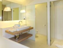 Katschberghöhe 9 km od mjesta St. Michael: Moderni, vrlo komforni aparthotel "edel:weiss", prikladan za djecu 1'640 m n.m.. 64 apartmana u residenceu. U samom mjestu Katschberghöhe, 6 km od centra mjesta St. Michael, 22 km od centra mjesta Gmünd, povišeno mjesto, direktno na skijalištu. Za zajedničko korištenje: park, 3 bazena, unutarnji bazen grijani (15 x 6 m, 140 cm dubok, sezonska dostupnost: 01.Jan. - 31.Dec.) s unutarnjim stepenicama. Tuš/WC uz bazen, bazen za djecu, tobogan, vanjski tuš, terasa, vrtna garnitura za sjedenje. U kompleksu: recepcija, restoran, bar, prostorija za druženje wireless LAN [WLAN], sauna, prostorija za fitnes, masaža (uz doplatu). Parna kupelj, prostorija za relaksaciju, wellness za zajedničko korištenje, biljar, igraonica za djecu, dizalo, terasa za sunčanje, spremište za skije, grijač za skijašku obuću. Dostava novina i doručak puni pansion polupansion može (uz doplatu). Transfer s aerodroma (uz doplatu). Zajednička garaža (uz doplatu). Trgovina 300 m, restoran 100 m, autobusna postaja 500 m, željeznička postaja "Spittal an der Drau" 35 km. Golf teren (18 rupa) 6 km, tenis, jahanje konja 800 m, pješačke staze od kuće 50 m, biciklistička staza 6 km, uspinjača, skilift 500 m, skijaške staze, najam skijaške opreme, škola skijanja, škola skijanja za djecu 10 m. U blizini: Adventurepark Katschberg 100 m. Poznata skijališta u blizini: Katschberg 100 m. Dodatna informacija: animacija. Prikladno za obitelji, oprema za bebe na upit, babysitting (uz doplatu). U slučaju povoljnih snježnih uvjeta pristup do kuće na skijama. Obavezno parkiralište (uz nadoplatu,nema drugih parkirnih mjesta). Od prosinca do travnja, dječji krevetić, kuhinjski set, ogrtač za kupanje i obuća za kupanje uključeni su u cijenu. Od svibnja do studenog mogu se kupiti uz nadoplatu.Interior