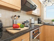 Villa stretches on 3 floors: Ground floor – toilet, 1st floor - living room area with kitchen, 2nd floor, two bedrooms and family bathroom with bath.Interior