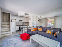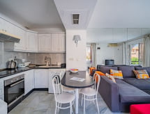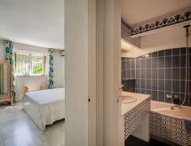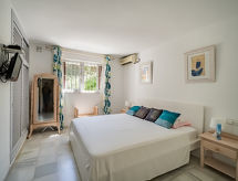 "Atalaya Rio Verde", 2 -sobni apartman 50 m2. Objekt pogodan za 2 odraslih + 2 djece. Komforno uređen: dnevni boravak/blagovaona s 1 kaučem za 1 osobu (140 cm, dužina 200 cm), digitalnim TV. Izlaz na terasu. 1 soba s 1 franc. krevetom (180 cm, dužina 200 cm). Otvorena kuhinja (pećnica, mikrovalna pećnica, zamrzivač, gril). Kada/WC. Grijanje, klima uređaj. Terasa 6 m2. Garnitura za sjedenje. Pogled na vrt. Na raspolaganju: perilica za rublje, glačalo, visoka dječja stolica, dječji krevetić, sušilo za kosu. Internet (wireless LAN [WLAN], besplatan). R000000001- postrojenja