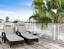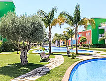 "Pueblo del Cid", 3 -sobni apartman na 1. katu. Prostrano i svijetlo, komforno i moderno uređen: dnevni boravak/blagovaona s digitalnim TV, plosnatim TV ekranom, DVD-om, klima uređajem i grijanjem na topli zrak. Izlaz na balkon. 1 soba s 2 kreveta (90 cm, dužina 190 cm), ventilatorom. 1 soba s 1 franc. krevetom (135 cm, dužina 190 cm), ventilatorom. Otvorena kuhinja (pećnica, 4 Indukcione ploče, mikrovalna pećnica, zamrzivač, el. aparat za kavu). Kada/bidet/WC. Velika terasa 40 m2, mala terasa 10 m2 (natkrita). Garnitura za sjedenje, vrtni roštilj (prijenosni), ležaljke (2), mjesto za sjedenje. Na raspolaganju: perilica za rublje. Internet (wireless LAN [WLAN], besplatan). Parking br. 52. AT-446220-A- postrojenja