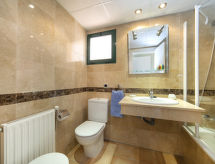 "Pueblo Mascarat", 3 -sobni apartman 94 m2 na 1. katu. Prostrano i svijetlo, svrsishodno i komforno uređen: dnevni boravak/blagovaona s digitalnim TV, klima uređajem i grijanjem na topli zrak. Izlaz na terasu. 1 soba s 1 franc. krevetom (1 x 135 cm, dužina 200 cm), kadom/bidetom/WC-om, klima uređajem i grijanjem na topli zrak. Izlaz na terasu. 1 soba s 2 kreveta (80 cm, dužina 200 cm), klima uređajem i grijanjem na topli zrak. Kuhinja (pećnica, mikrovalna pećnica, el. aparat za kavu). Tuš/WC. Velika terasa. Garnitura za sjedenje. Panoramski pogled na more i na grad. Na raspolaganju: perilica za rublje, glačalo, visoka dječja stolica, dječji krevetić do 2 godine, sušilo za kosu. Internet (wireless LAN [WLAN], besplatan). Parking uz kuću. Prikladno za obitelji. VT-485087-A- Aktivnosti u blizini