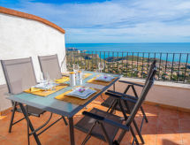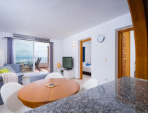 "Pueblo Panorama", 3 -sobni apartman 55 m2. Svijetlo, komforno uređen: dnevni boravak/blagovaona s TV-om sa sat. prijemnikom i klima uređajem. Izlaz na balkon. 1 soba s 1 bračnim krevetom (160 cm, dužina 200 cm), TV-om i klima uređajem. 1 soba s 2 kreveta (90 cm, dužina 200 cm). Mala, otvorena kuhinja (pećnica, perilica za suđe, 4 staklokeramičke ploče za kuhanje, mikrovalna pećnica, zamrzivač, el. aparat za kavu). Tuš/WC. Bez grijanja. Velika terasa (djelomično natkrita). Garnitura za sjedenje. Prekrasan panoramski pogled na more i krajolik. Na raspolaganju: perilica za rublje, glačalo, sušilo za kosu. Internet (wireless LAN [WLAN]). Prikladno za obitelji. VT-480771-A- postrojenja