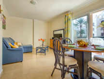 "Puerta del Palmar", 3 -sobni apartman 63 m2. Lijepo i udobno uređen: dnevni boravak/blagovaona s digitalnim TV, klima uređajem i grijanjem na topli zrak. Izlaz u vrt, na terasu, na bazen. 1 soba s 1 franc. krevetom (150 cm, dužina 200 cm), kadom/bidetom/WC-om, klima uređajem i grijanjem na topli zrak. 1 soba s 2 kreveta (90 cm, dužina 200 cm), klima uređajem i grijanjem na topli zrak. Otvorena kuhinja (pećnica, perilica za suđe, 4 staklokeramičke ploče za kuhanje, toster, kuhalo za vodu, mikrovalna pećnica, zamrzivač, el. aparat za kavu). Tuš/WC. Velika terasa 15 m2. Garnitura za sjedenje. Na raspolaganju: perilica za rublje, glačalo, visoka dječja stolica, dječji krevetić, sušilo za kosu. Internet (wireless LAN [WLAN], besplatan). Parking br. E2. VT-487983-A- Aktivnosti u blizini