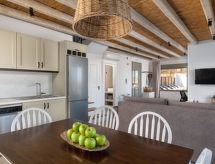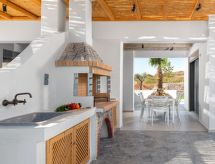 Moderna, lijepa vila "Punente", na 2 kata, nadograđena s jedne strane, okružena poljima. U četvrti Lachania, mirno, sunčano mjesto, 1.2 km od mora, 1.2 km od plaže. Za samostalno korištenje: lijepi, njegovani vrt - cvijeće i drveće, travnjak za sunčanje, bazen pravokutni (36 m2, sezonska dostupnost: 01.Apr. - 30.Nov.). Vanjski tuš. Parking uz kuću. Trgovina živežnim namirnicama 2 km, supermarket 2 km, restoran 2 km, pješčana plaža "Lachania" 1.2 km. Golf teren (18 rupa) 53.7 km, jahanje konja 59.2 km. U blizini: Valley of the Butterflies 66.6 km, Lindos Acropolis 29.8 km, Asklipio Castle 16.2 km, Palace of the Grand Master of Knights 72.1 km, Medieval City of Rhodes 71 km, Waterpark Rhodes 60.6 km. Dodatna informacija: preporučljiv vlastiti prijevoz. Prikladno za obitelji, oprema za bebe na upit (uklj.). Grupe mladih samo na upit. Fotografija prikazuje samo tipičan primjer kuće. Mogućnost rezerviranja dodatnih smještajnih jedinica. Objekt ref.br. GR5030.12.1 je smješten na istoj parceli.Interior