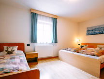 "Punta Emma (PFS300)", 4 -sobni apartman 75 m2 na 2 etaže. Svrsishodno uređen: 1 bračna soba. 1 soba s 2 kreveta (80 cm), 1 ležajem (80 cm). Tuš/WC. Gornji kat: 1 soba s 1 krevetom i 1 bračnim krevetom. Kuhinja/dn. boravak (pećnica, perilica za suđe, 4 staklokeramičke ploče za kuhanje, kuhalo za vodu, zamrzivač, el. aparat za kavu) s kutom za blagovanje i TV-om sa sat. prijemnikom. Izlaz na balkon. Tuš/WC. Grijanje na plin. Balkon. Balkonski namještaj, ležaljke. Panoramski pogled. Na raspolaganju: perilica za rublje, glačalo. Internet (wireless LAN [WLAN], uz doplatu). Parking (1 automobil), garaža (1 automobil). Dodatna informacija: apartman za nepušače. Najviše 1 kućni ljubimac / pas dozvoljen. Vlastiti ulaz. CIPAT: 022250-AT-069753- postrojenja