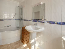 3 -sobna obiteljska kuća na 2 etaže. Prostrano i svijetlo, komforno i ukusno uređena: otvoreni dnevni boravak s TV-om, plosnatim TV ekranom i DVD-om. Otvorena kuhinja (4 ploče za kuhanje, pećnica, mikrovalna pećnica, zamrzivač) s stolom za blagovanje. Kada/tuš/WC. Grijanje. Gornji kat: 1 bračna soba s 1 bračnim krevetom i tušem/WC-om. 1 soba s 2 kreveta. Kada/tuš/WC. Grijanje. Garnitura za sjedenje. Lijep pogled na more. Na raspolaganju: perilica za rublje, sušilica. Internet (wireless LAN [WLAN], besplatan). Dodatna informacija: kuća za nepušače.- postrojenja