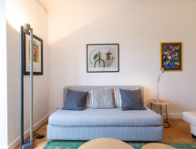 Lijepi residence "Regina". U samom mjestu, 1 km od centra mjesta, mirno mjesto u jednoj četvrti za stanovanje, 300 m od mora, 300 m od plaže. U kompleksu: restoran, wellness (uz doplatu). Trgovina živežnim namirnicama 400 m, restoran 300 m, bar, pekara 400 m, autobusna postaja 200 m, pješčana plaža "Le Miramar" 300 m, natkriveni bazen 900 m. Golf teren (18 rupa) 500 m, škola jedrenja na dasci 900 m, jahanje konja 3.2 km. Ključeve ćete preuzeti u turističkoj agenciji Interhome.Interior