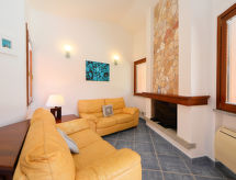 "Rei Sole (REI301)", 4 -sobna kuća 100 m2. Prostrano, lijepo i ukusno uređena: dnevni boravak/blagovaona s otvorenim kaminom, stolom za blagovanje i TV-om sa sat. prijemnikom. Izlaz na terasu. 2 sobe, svaka soba s 1 bračnim krevetom. 1 soba s 2 kreveta. Otvorena kuhinja (1 ploča za kuhanje, pećnica, perilica za suđe, 3 plamena za kuhanje, mikrovalna pećnica). 2 x tuš/WC. El. grijanje, klima uređaj. Terasa (natkrita). Garnitura za sjedenje, vrtni roštilj, ležaljke (2). Na raspolaganju: perilica za rublje, dječji krevetić (uz doplatu). Internet (DSL/LAN, uz doplatu).- postrojenja