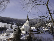 5 -sobna kuća 160 m2 na 2 etaže. Djelomično spušten strop, udobno uređena: predsoblje. Veliki dnevni boravak/blagovaona s kutom za blagovanje i TV-om sa sat. prijemnikom. 1 bračna soba. 1 soba s 1 bračnim krevetom i 1 ležajem (1 x 140 cm), TV-om sa sat. prijemnikom. Otvorena kuhinja (pećnica, 4 staklokeramičke ploče za kuhanje, mikrovalna pećnica, el. aparat za kavu). Tuš, bidet, odv. WC. Potkrovlje galerija s umivaonikom. 1 bračna soba s TV-om sa sat. prijemnikom. 1 bračna soba. Dnevni boravak je uređen u seoskom stilu. Balkon, vrtna terasa. Balkonski namještaj. Lijep pogled na krajolik. Na raspolaganju: perilica za rublje, sušilica. Internet (wireless LAN [WLAN], besplatan). Dodatna informacija: apartman za nepušače. 1 kućni ljubimac / pas dozvoljen.- postrojenja