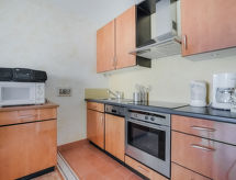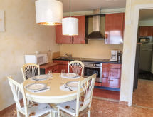 2 -sobni apartman 50 m2 na 2. katu. Komforno uređen: dnevni boravak/blagovaona s 1 kaučem za 1 osobu (120 cm, dužina 190 cm), 1 rasklopnim krevetom (90 cm, dužina 190 cm), TV-om. Izlaz na balkon. 1 soba s 1 bračnim krevetom (2 x 90 cm, dužina 200 cm). Izlaz na balkon. Otvorena kuhinja (4 ploče za kuhanje, pećnica, perilica za suđe, mikrovalna pećnica, el. aparat za kavu). Tuš, odv. WC. El. grijanje. Balkon 8 m2. Balkonski namještaj. Bočni pogled na more. Na raspolaganju: perilica za rublje. Dodatna informacija: protupožarni alarm. 06029014464AK- postrojenja