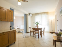 1 -sobni apartman 40 m2. Svrsishodno i lijepo uređen: dnevno-spavaća soba s 1 franc. krevetom i TV-om sa sat. prijemnikom. Kuhinjska niša (2 ploče za kuhanje, pećnica) s stolom za blagovanje. Tuš/bidet/WC. Grijanje (uz doplatu). Na raspolaganju: Internet (wireless LAN [WLAN], besplatan).