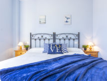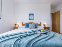 4 -sobni apartman 85 m2 na 1. katu. Vrlo komforno i lijepo uređen: dnevni boravak/blagovaona s digitalnim TV i klima uređajem. Izlaz na balkon. 2 sobe, svaka soba s 1 franc. krevetom (135 cm, dužina 190 cm). 1 soba s 1 krevetom na izvlačenje (2 osobe 2 x 90 cm, dužina 190 cm). Otvorena kuhinja (pećnica, perilica za suđe, 4 staklokeramičke ploče za kuhanje, mikrovalna pećnica). Kada/WC, tuš/WC. Klima uređaj. Terasa 10 m2. Garnitura za sjedenje, ležaljke. Lijep pogled na more. Na raspolaganju: perilica za rublje, sef, dječji krevetić do 3 godine. Internet (wireless LAN [WLAN], besplatan). Parking br. 14. 1 kućni ljubimac / pas dozvoljen. HUTTE001556- Značajke smještaja