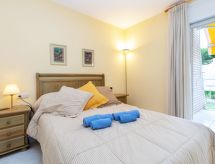 3 -sobni apartman 50 m2 na 2. katu. Komforno i udobno uređen: predsoblje. Dnevni boravak/blagovaona s stolom za blagovanje i kabelskom TV (plosnatim TV ekranom). Izlaz na terasu. 1 soba s 1 franc. krevetom (130 cm, dužina 190 cm). 1 soba s 2 kreveta (90 cm, dužina 190 cm). Otvorena kuhinja (3 staklokeramičke ploče za kuhanje, toster, kuhalo za vodu, mikrovalna pećnica, zamrzivač, el. aparat za kavu). Kada/WC. Terasa (djelomično natkrita). Garnitura za sjedenje. Lijep pogled na bazen i vrt. Na raspolaganju: perilica za rublje, glačalo, sušilo za kosu. Internet (wireless LAN [WLAN], besplatan). Dodatna informacija: prikladno za obitelji. Apartman za nepušače. Nema dizala. HUTG064356- postrojenja