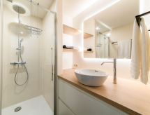 "Seaview 1", 3 -sobni apartman u potkrovlju 115 m2 na 2 etaže na 9. katu, prema jugozapadu. Potpuno renoviran godine 2021, komforno i moderno uređen: predsoblje. Dnevni boravak/blagovaona s stolom za blagovanje, digitalnim TV i međunarodnim TV kanalima. 1 bračna soba s 1 bračnim krevetom (180 cm, dužina 200 cm). Otvorena kuhinja (pećnica, perilica za suđe, 4 staklokeramičke ploče za kuhanje, toster, kuhalo za vodu, mikrovalna pećnica, el. aparat za kavu). Tuš/WC. Gornji kat: 1 bračna soba s 1 bračnim krevetom (180 cm, dužina 200 cm), digitalnim TV i međunarodnim TV kanalima. Kuhinjska niša (perilica za suđe, 4 staklokeramičke ploče za kuhanje, kombinirana mikrovalna pećnica). Tuš/WC. 2 mala balkona 3 m2, prema jugozapadu i prema sjeveroistoku, velika terasa 30 m2, prema jugozapadu. Garnitura za sjedenje. Lijep pogled na more. Na raspolaganju: perilica za rublje, sušilo za kosu. Internet (wireless LAN [WLAN], besplatan). Parking br. 76 (1 automobil). Dodatna informacija: kuća za nepušače. Protupožarni alarm, vatrogasni aparat.- postrojenja