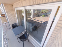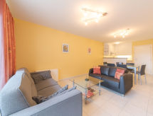 3 -sobni apartman 64 m2 na 1. katu. Komforno i udobno uređen: predsoblje s odv. WC-om. Dnevni boravak/blagovaona s stolom za blagovanje, TV-om i međunarodnim TV kanalima (plosnatim TV ekranom). Izlaz na balkon. 2 sobe, svaka soba s 1 krevetom (160 cm, dužina 200 cm). Otvorena kuhinja (pećnica, 4 staklokeramičke ploče za kuhanje, toster, kuhalo za vodu, mikrovalna pećnica, zamrzivač, el. aparat za kavu). Kada/tuš/WC. El. grijanje. 2 balkona 4 m2. Balkonski namještaj. Na raspolaganju: sušilo za kosu. Internet (wireless LAN [WLAN], besplatan). Dodatna informacija: kuća za nepušače.- Značajke smještaja