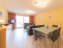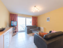 Moderni residence "Residentie Duinenbries", na 3 kata. U centru mjesta Bredene, 500 m od mora, 500 m od plaže. U kući: dizalo. Trgovina, restoran 150 m, pekara 100 m, Tramvaj "De Lijn" 250 m, željeznička postaja "Oostende" 4 km, pješčana plaža "Bredene" 300 m. U blizini: Markt (dinsdagmorgen) 50 m, Boudewijnpark 25 km, Plopsaland De Panne 47 km.Interior