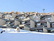 "Residenz Surlej 6", 1 -sobni apartman 60 m2, u povišenom prizemlju. Svrsishodno i rustikalno uređen: dnevno-spavaća soba s 1 rasklopnim ormar-krevetom za 2 osobe (1 x 150 cm, dužina 200 cm), tušem/bidetom/WC-om i TV-om (plosnatim TV ekranom). Izlaz na terasu, prema jugu. Mala kuhinja (3 ploče za kuhanje, pećnica, perilica za suđe, toster, kuhalo za vodu, el. aparat za kavu). Lijep pogled na planine. Na raspolaganju: sušilo za kosu. Internet (wireless LAN [WLAN], besplatan). Garaža br. 6, visina 195 cm, širina 235 cm. Dodatna informacija: apartman za nepušače.- Značajke smještaja