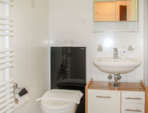 "Gartensitzplatz", 1 -sobni apartman 30 m2, u prizemlju, prema sjeveroistoku. Svijetlo, komforno i moderno uređen: otvoreni dnevni boravak/blagovaona s 2 rasklopna ormar-kreveta za 1 osobu (90 cm, dužina 200 cm), kutom za blagovanje, kabelskom TV, plosnatim TV ekranom, radiom i muzičkom linijom. Izlaz na mjesto za sjedenje u vrtu. Mala kuhinja (2 ploče za kuhanje, pećnica, mikrovalna pećnica). Tuš/WC. Grijanje. Velika vrtna terasa (djelomično natkrita). Garnitura za sjedenje. Lijep pogled na vrt. Na raspolaganju: sušilo za kosu. Dodatna informacija: apartman za nepušače.- postrojenja