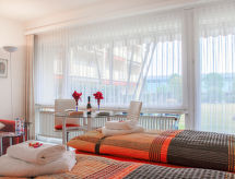 Locarno: Veliki, komforni stambeni objekt "Residenza Lido", na 6 kata, okružen drvećem i livadama. Na rubu mjesta, 1.8 km od centra mjesta Piazza Grande, sunčano mjesto, odlična pozicija: u samom centru, a ipak mirno, 50 m od jezera, u zelenom. U kući: recepcija, prostorija za druženje, dizalo, krovna terasa, centralno grijanje. Prilaz autom do kuće. Parking (ograničen broj mjesta, uz doplatu) uz kuću, javni parking 100 m na ulici uz doplatu. Trgovina 1.1 km, trgovina živežnim namirnicama 1.1 km, restoran, cafe 80 m, pješice 15 minuta do centra, autobusna postaja "Linie 3 + 4" 50 m, željeznička postaja "Locarno SBB-CFF" 3 km, vanjski bazen, natkriveni bazen 50 m, termalno kupalište "Termali & Salini" 80 m, kupalište 50 m. Golf teren (18 rupa) 6 km, tenis 400 m, minigolf 2 km, pješačke staze od kuće 50 m. Poznata jezera u blizini: Lago Maggiore, Lago di Lugano, Lago di Como. Pješačke staze: Cardada, Monte Verità, Centovalli, Vallemaggia, Valle Onsernone, Valle Verzasca. Dodatna informacija: Nije prikladno za malu djecu. Nije prikladno za djecu mlađu od 14 godina. Objekt ref.br. CH6600.410 je smješten na istoj parceli. ,Pažnja : Parkirno mjesto potrebno je rezervirati najmanje 3 dana prije dolaska kako bi se moglo potvrditi i dodijeliti. 5.-CHF po danu.Interior