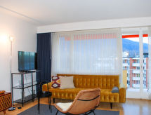 Locarno: Veliki, komforni stambeni objekt "Residenza Lido", na 6 kata, okružen drvećem i livadama. Na rubu mjesta, 1.8 km od centra mjesta Piazza Grande, sunčano mjesto, odlična pozicija: u samom centru, a ipak mirno, 50 m od jezera, u zelenom. U kući: recepcija, prostorija za druženje, dizalo, krovna terasa, centralno grijanje. Prilaz autom do kuće. Parking (ograničen broj mjesta, uz doplatu) uz kuću, javni parking 100 m na ulici uz doplatu. Trgovina 1.1 km, trgovina živežnim namirnicama 1.1 km, restoran, cafe 80 m, pješice 15 minuta do centra, autobusna postaja "Linie 3 + 4" 50 m, željeznička postaja "Locarno SBB-CFF" 3 km, vanjski bazen, natkriveni bazen 50 m, termalno kupalište "Termali & Salini" 80 m, kupalište 50 m. Golf teren (18 rupa) 6 km, tenis 400 m, minigolf 2 km, pješačke staze od kuće 50 m. Poznata jezera u blizini: Lago Maggiore, Lago di Lugano, Lago di Como. Pješačke staze: Cardada, Monte Verità, Centovalli, Vallemaggia, Valle Onsernone, Valle Verzasca. Dodatna informacija: Nije prikladno za malu djecu. Nije prikladno za djecu mlađu od 14 godina. Objekt ref.br. CH6600.410 je smješten na istoj parceli. ,Pažnja : Parkirno mjesto potrebno je rezervirati najmanje 3 dana prije dolaska kako bi se moglo potvrditi i dodijeliti. 5.-CHF po danu.Interior