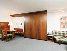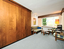 Residence "Ringstrasse (Utoring)". U samom mjestu, 500 m od centra mjesta, 20 m od skijališta. U kući: bar, prostorija za druženje, stolni tenis, igraonica za djecu, dizalo, spremište za bicikle, spremište za skije, centralno grijanje, perilica za rublje, sušilica (uz doplatu). Dostava kruha i dostava pića. Prilaz autom do kuće (planinska cesta). Zimi molimo ponijeti lance za snijeg, zimi preporučljiv pogon 4x4. Parking uz kuću, javna garaža na 50 m, uz doplatu. Trgovina živežnim namirnicama, supermarket, restoran, vanjski bazen 500 m, termalno kupalište 300 m. Tenis 500 m, kabinska žičara, skijaške žičare, skijaške staze 20 m, staza za sanjkanje, staza za skijaško trčanje 500 m, klizalište 1 km. Poznata skijališta u blizini: Leukerbad Torrent. Pješačke staze: Gemmi 1 km.Interior