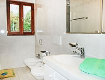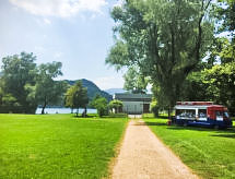 "Casa Riva", 5 -sobna kuća na 2 etaže. Komforno i lijepo uređena: otvoreni veliki dnevni boravak/blagovaona s otvorenim kaminom, kutom za blagovanje, kabelskom TV, plosnatim TV ekranom i muzičkom linijom. Izlaz u vrt, na mjesto za sjedenje u vrtu. 1 soba s 1 krevetom (90 cm, dužina 200 cm). Velika, otvorena kuhinja (pećnica, perilica za suđe, 4 staklokeramičke ploče za kuhanje, el. aparat za kavu, Doze za mašinu za kavu (Nespresso) uz doplatu). Izlaz u vrt, na terasu. Tuš/WC. Gornji kat: 2 bračne sobe, svaka soba s 2 kreveta (90 cm, dužina 200 cm). 1 bračna soba s 1 bračnim krevetom (2 x 90 cm, dužina 200 cm), kadom/bidetom/WC-om i duplim umivaonikom. Tuš/bidet/WC. Velika vrtna terasa (djelomično natkrita). Garnitura za sjedenje, vrtni roštilj, ležaljke (6). Djelomičan pogled na jezero i krajolik. Na raspolaganju: glačalo, visoka dječja stolica, dječji krevetić do 2 godine (uz doplatu), sušilo za kosu. Internet (wireless LAN [WLAN], besplatan). Dodatna informacija: kuća za nepušače. Najviše 2 kućna ljubimca / psa dozvoljena.- Značajke smještaja