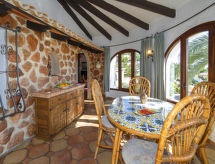 Benissa Costa: Kuća "Roberto". 6.6 km od centra mjesta Moraira, 11.5 km od centra mjesta Calpe, u području Montemar, mirno mjesto, 3 km od mora. Za samostalno korištenje: parcela 800 m2, bazen (8 x 4 m, sezonska dostupnost: 01.Jan. - 31.Dec.). Terasa, vrtna garnitura za sjedenje, roštilj. U kući: centralno grijanje. Supermarket 1.2 km, restoran, bar 500 m, pješčana plaža 5.8 km, uvala za kupanje 3 km. U blizini: Aqualandia, Mundomar, Terra Mítica, Terra Natura, y Benidorm Palace (Benidorm).Interior