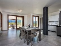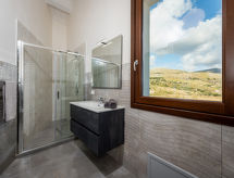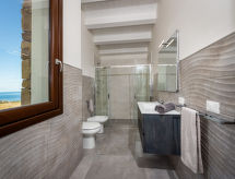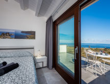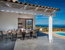 Vila "Rocchi Livreri", godina izgradnje 2020. U zaseoku Scopello 8 km od centra mjesta Castellammare del Golfo, izolirano, mirno, sunčano mjesto na brežuljku, 5 km od mora, prema sjeveroistoku. Za samostalno korištenje: parcela 1'500 m2 (ograđena), bazen (4 x 8 m, 150 cm dubok, sezonska dostupnost: 01.Apr. - 31.Oct.). Vanjski tuš, vrtna garnitura za sjedenje, roštilj. Bazen održava vlasnik/vrtlar Parking na parceli. Trgovina živežnim namirnicama 3 km, supermarket 7 km, bar 3 km, željeznička postaja "Castellammare del Golfo" 12 km, pješčana plaža "Castellammare del Golfo" 11 km, plaža s oblucima "Guidaloca" 5 km. U blizini: Parco Archeologico Segesta 28 km, Trapani Porto Aliscafi per Isole Egadi 35 km, Erice 35 km, San Vito lo Capo 42 km, Saline di Marsala 58 km, Palermo 70 km. Dodatna informacija: preporučljiv vlastiti prijevoz.Interior