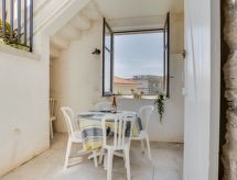 2 -sobni apartman 42 m2, na međukatu. Komforno i moderno uređen: dnevni boravak/blagovaona s 1 kaučem za 2 osobe (140 cm, dužina 190 cm), TV-om (plosnatim TV ekranom). Izlaz na terasu, prema jugozapadu. 1 soba s 2 kreveta na izvlačenje (2 x 90 cm, dužina 190 cm). Otvorena kuhinja (pećnica, perilica za suđe, 4 Indukcione ploče, toster, kuhalo za vodu, mikrovalna pećnica, zamrzivač, el. aparat za kavu, Doze za mašinu za kavu (Nespresso) uz doplatu). Tuš/WC. El. grijanje. Terasa 7 m2, prema jugozapadu. Garnitura za sjedenje. Djelomičan pogled na more. Na raspolaganju: perilica za rublje, glačalo, sušilo za kosu. Internet (wireless LAN [WLAN], besplatan). Dodatna informacija: apartman za nepušače. 1 kućni ljubimac / pas dozvoljen. Protupožarni alarm. Ponuda od strane fizičke osobe u skladu s člankom 155, IV, CGI. 641220036372E- postrojenja