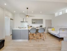 Lijepa kuća s 3 apartmana "Roche Ronde", na 3 kata. U četvrti Miramar, u samom mjestu 300 m od centra mjesta Biarritz, 50 m od mora, 50 m od plaže. Za zajedničko korištenje: vrt (ograđen). Trgovina 200 m, trgovina živežnim namirnicama 450 m, restoran 200 m, bar 500 m, pekara 400 m, cafe 200 m, autobusna postaja "Le Palais" 50 m, željeznička postaja "de Biarritz" 3.7 km, pješčana plaža "Miramar" 50 m, natkriveni bazen 400 m. Golf teren (18 rupa) 1 km, škola jedrenja na dasci 600 m. U blizini: Phare de Biarritz 850 m, Port des Pêcheurs 1 km, Marché des Halles 1.1 km, Aquarium de Biarritz 1.5 km, Bayonne 8 km, Saint-Jean-de-Luz 17 km. Pješačke staze: Le Sentier du Littoral 50 m, La Rhune 35 km. Ključeve ćete preuzeti u turističkoj agenciji Interhome.Interior