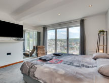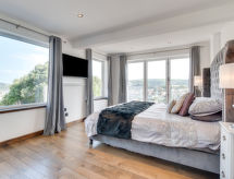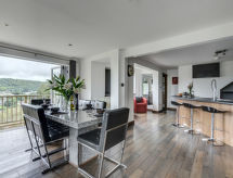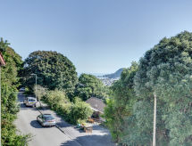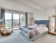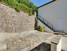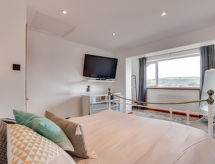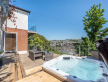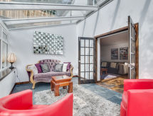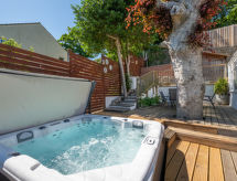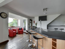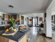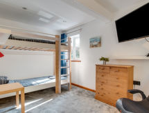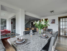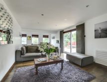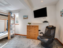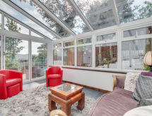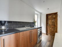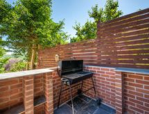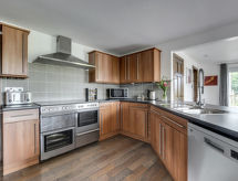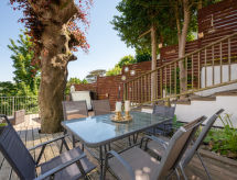 5 -sobna obiteljska kuća na 3 etaže. Prostrano i svijetlo, komforno i ukusno uređena: otvoreni dnevni boravak s TV-om, plosnatim TV ekranom i DVD-om. Otvorena kuhinja (4 ploče za kuhanje, pećnica, mikrovalna pećnica, zamrzivač) s stolom za blagovanje. Odv. WC. Grijanje. Donji kat: soba za igru. Tuš/WC. Grijanje. Gornji kat: 1 bračna soba s 1 bračnim krevetom, tušem/WC-om i TV-om (plosnatim TV ekranom). Izlaz na balkon. 1 soba s 1 bračnim krevetom i TV-om (plosnatim TV ekranom), DVD-om. 1 bračna soba s 1 bračnim krevetom. Izlaz na balkon. 1 soba s 1 x 2 kreveta na kat, TV-om (plosnatim TV ekranom), DVD-om. Kada/tuš/WC. Grijanje. Garnitura za sjedenje, balkonski namještaj, vrtni roštilj. Lijep pogled na mjesto. Na raspolaganju: perilica za rublje, sušilica. Internet (wireless LAN [WLAN], besplatan). Blu-ray player, iPod docking station. Dodatna informacija: kuća za nepušače.- postrojenja