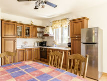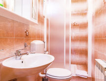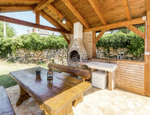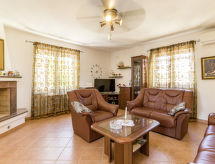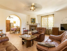 5 -sobna kuća 150 m2 na 2 etaže. Dnevni boravak/blagovaona s otvorenim kaminom, TV-om sa sat. prijemnikom i klima uređajem. Izlaz na terasu. 1 soba s 1 bračnim krevetom. Izlaz na terasu. 1 soba s 1 bračnim krevetom. 1 soba s 1 franc. krevetom (160 cm, dužina 200 cm). Otvorena kuhinja (1 ploča za kuhanje, pećnica, perilica za suđe, 3 plamena za kuhanje, toster, kuhalo za vodu, mikrovalna pećnica, zamrzivač, el. aparat za kavu). Tuš/WC, kada/tuš/bidet/WC. Gornji kat: predsoblje s klima uređajem. 1 soba s kosim stropom, visina stropa 120 - 260 cm s 1 bračnim krevetom. Tuš/WC. Terasa. Garnitura za sjedenje, ležaljke, ostava. Na raspolaganju: glačalo, drvo (uklj.). Internet (wireless LAN [WLAN], besplatan). Dodatna informacija: kuća za nepušače. Najviše 2 kućna ljubimca / psa dozvoljena.- postrojenja