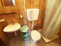 2 -sobni apartman 30 m2 na 1. katu. Dnevni boravak/blagovaona s 1 kaučem za 1 osobu i TV-om sa sat. prijemnikom (plosnatim TV ekranom), klima uređajem. Izlaz na terasu. 1 soba s 1 bračnim krevetom (2 x 80 cm, dužina 190 cm). Otvorena kuhinja (1 ploča za kuhanje, pećnica, 3 plamena za kuhanje, toster, kuhalo za vodu, mikrovalna pećnica). Tuš/WC. Terasa 7 m2 (natkrita). Garnitura za sjedenje. Pogled na bazen. Na raspolaganju: sušilo za kosu. Internet (wireless LAN [WLAN], besplatan). Najviše 1 kućni ljubimac / pas dozvoljen.- postrojenja