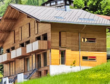 "Apt.No.1", 4 -sobni apartman 100 m2 na 2 etaže. Prostrano i svijetlo, moderno i ukusno uređen: dnevni boravak/blagovaona s stolom za blagovanje, kabelskom TV i DVD-om. 1 soba s 1 bračnim krevetom (1 x 180 cm, dužina 200 cm). Otvorena kuhinja (pećnica, perilica za suđe, 4 staklokeramičke ploče za kuhanje, toster, kuhalo za vodu, mikrovalna pećnica, el. aparat za kavu, Doze za mašinu za kavu (Nespresso) uz doplatu, set za fondue (sir)). Donji kat: 1 soba s 1 bračnim krevetom (1 x 150 cm, dužina 200 cm). 1 soba s 2 kreveta (90 cm, dužina 200 cm). Tuš/WC, kada/tuš/WC. Terasa. Garnitura za sjedenje. Vrlo lijep pogled na planine. Na raspolaganju: perilica za rublje, sušilica, sušilo za kosu. Internet (wireless LAN [WLAN], besplatan). Dodatna informacija: apartman za nepušače.- postrojenja