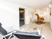 2 -sobni apartman 45 m2, u prizemlju. Rustikalno uređen: dnevno-spavaća soba s 1 kaučem za 1 osobu, stolom za blagovanje i TV-om sa sat. prijemnikom. Izlaz na terasu. 1 soba s 1 franc. krevetom (160 cm). Izlaz na terasu. Mala, otvorena kuhinja (4 plamena za kuhanje, el. aparat za kavu, kombinirana mikrovalna pećnica). Tuš/bidet/WC. Grijanje na plin. Terasa 10 m2. Garnitura za sjedenje. Lijep pogled u daljini na krajolik. Na raspolaganju: visoka dječja stolica, dječji krevetić do 2 godine. Internet (wireless LAN [WLAN], besplatan). Parking (1 automobil) uz kuću. Dodatna informacija: apartman za nepušače. Najviše 1 kućni ljubimac / pas dozvoljen. Vlastiti ulaz. Na licu mjesta nema naplate dodatnih troškova, osim boravišne pristojbe.- postrojenja