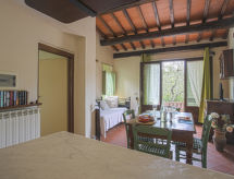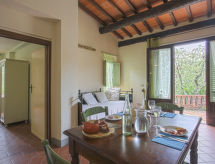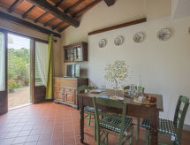 Lijep, rustikalan Agroturizam "Borgo della Limonaia", 130 m n.m., okružen drvećem i poljima. 4 kuće u residenceu. 6 apartmana u residenceu. 4 km od centra mjesta Montecatini Terme, 30 km od centra mjesta Lucca, 50 km od centra mjesta Firenze, izolirano, sunčano mjesto na padini, 55 km od mora, u zelenom. Za zajedničko korištenje: parcela 6 ha, lijepi terasasti vrt - bilje i drveće, bazen (11 x 6 m, 120- 160 cm dubok, sezonska dostupnost: 25.Apr. - 15.Oct.). Vanjski tuš, mjesto za sjedenje, terasa, vrtna garnitura za sjedenje, dječje igralište. Bazen održava vlasnik/vrtlar. U kompleksu: sauna, parna kupelj, hidromasažni bazen (sve uz doplatu), stolni tenis (sve uklj.), stolni nogomet, perilica za rublje (za zajedničko korištenje, uz doplatu). 200 m dugački uski prilaz autom do kuće. Parking na 200 m na parceli. Trgovina živežnim namirnicama 600 m, supermarket 1.5 km, restoran 200 m, željeznička postaja "Montecatini Terme" 4 km, pješčana plaža "Lido di Camaiore" 55 km. Golf teren (18 rupa) 10 km. Prodaja domaćih poljoprivrednih proizvoda.Interior