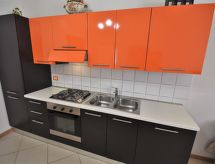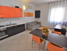 2 -sobni apartman 35 m2 na 2. katu. Komforno i moderno uređen: dnevni boravak/blagovaona s 1 kaučem za 2 osobe, stolom za blagovanje, TV-om i plosnatim TV ekranom. 1 velika bračna soba. Kuhinjska niša (pećnica, 4 plamena za kuhanje, mikrovalna pećnica, el. aparat za kavu). Tuš/bidet/WC. Klima uređaj. Na raspolaganju: perilica za rublje. Internet (wireless LAN [WLAN], besplatan). Dodatna informacija: apartman za nepušače. 1 kućni ljubimac / pas dozvoljen. Nema dizala.- postrojenja