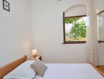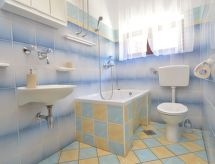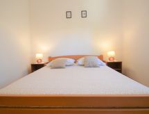 2 -sobni apartman 50 m2, u prizemlju, prema jugu. 1 soba s 1 franc. krevetom (160 cm, dužina 200 cm), kadom/WC-om. 1 soba s 1 franc. krevetom (180 cm, dužina 200 cm), kadom/WC-om. Blagovaona 10 m2 s TV-om sa sat. prijemnikom (plosnatim TV ekranom), klima uređajem. Izlaz na terasu. Otvorena kuhinja (4 ploče za kuhanje, pećnica, kuhalo za vodu, zamrzivač, el. aparat za kavu). Terasa 40 m2. Garnitura za sjedenje. Na raspolaganju: perilica za rublje, glačalo, sušilo za kosu. Internet (wireless LAN [WLAN], besplatan). 1 kućni ljubimac / pas dozvoljen.- postrojenja